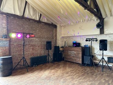 Active speakers on stands, LED sound activated light bars, laser lighting effects, large smoke machine, etc - all of your sound and lighting requirements in one place!